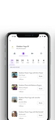 By using the Movement Core app you will be able to book new in-person classes and you will be able to see the classes you have booked. You will also be able to manage your account and edit your card on file. In the app, you'll be able to see the schedule of classes available.