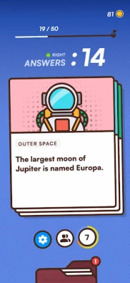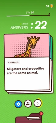Features: 1. Simple Controls. Swipe left or right to decide whether the statement is true or false. 2. Unlock a plethora of achievements as you unlock more topics. 3. Enjoy uninterrupted gameplay anytime, anywhere—no internet connection needed. 4. 25+ Unique Topics to unlock. 5. Stay engaged with a seamless and addictive gameplay flow.